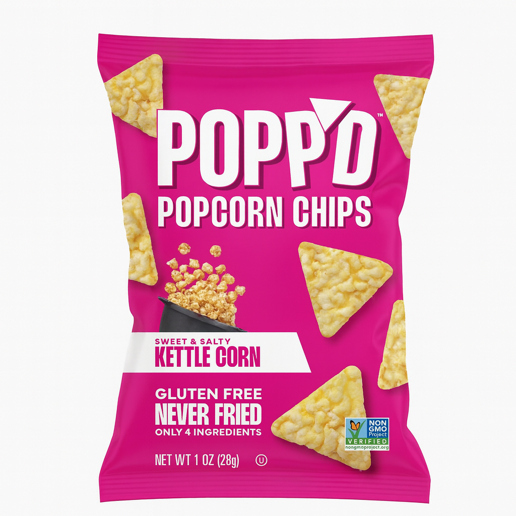 Popp'd Sweet & Salty Kettle Corn popped corn chips are never fried. Only 4 ingredients and oh so good. What a great sweet treat to have in the breakroom.