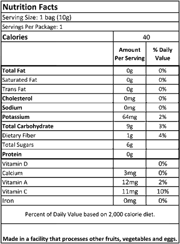 Allergens: Manufactured in a facility that processes other fruits, vegetables and eggs.